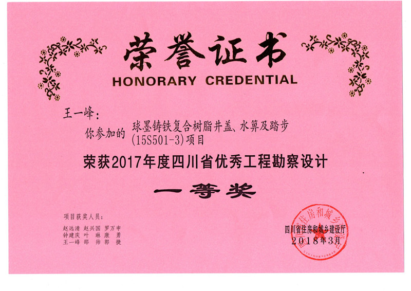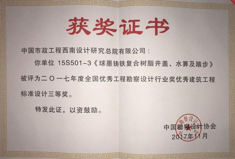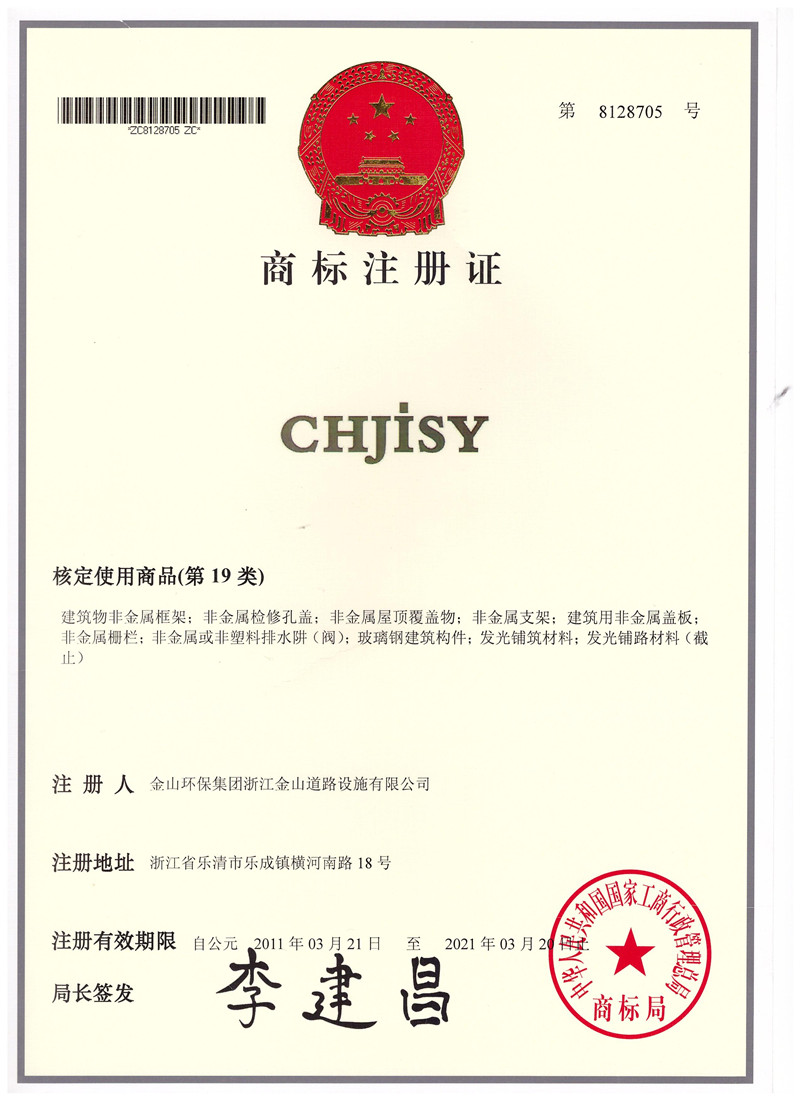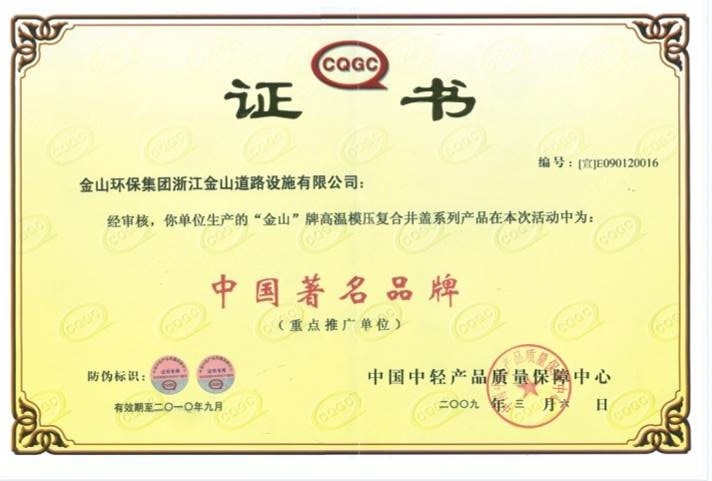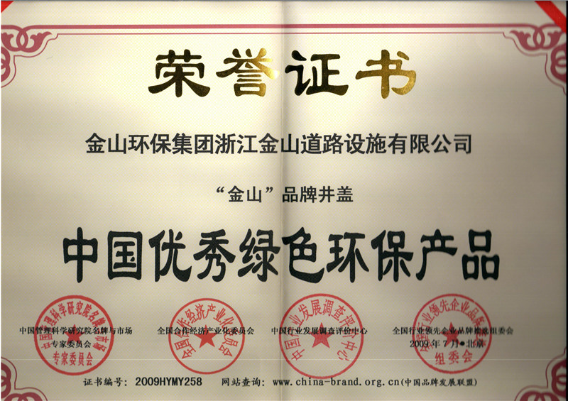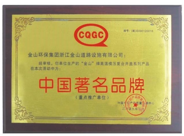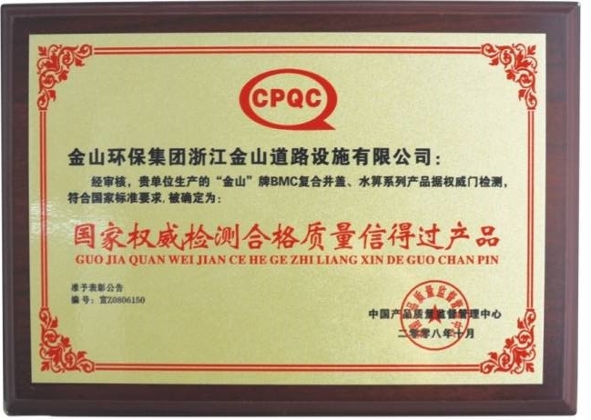 公司先后通过了ISO9001国际质量体系认证、ISO14001国际环境管理体系认证、GB/T28001-2001职业健康安全管理体系认证。拥有自主知识产权和十多项专利技术,同时也是国家城镇建设CJ/T327-2010《球墨铸铁复合树脂检查井盖》和CJ/T328-2010《球墨铸铁复合树脂水箅》两项行业标准的唯一主编单位,2012年应邀与石化系统专家一起编制并完成石油化工行业通用图集SHT109-2013《球墨铸铁复合树脂明沟盖板及井盖板》,“浙江省环保示范企业”、“2011年度浙江成长之星企业”、“国家星火计划落实企业”“浙江省国家税务局2014年度纳税信用A级”、 “温州市2015年省科技型企业”等多项荣誉
